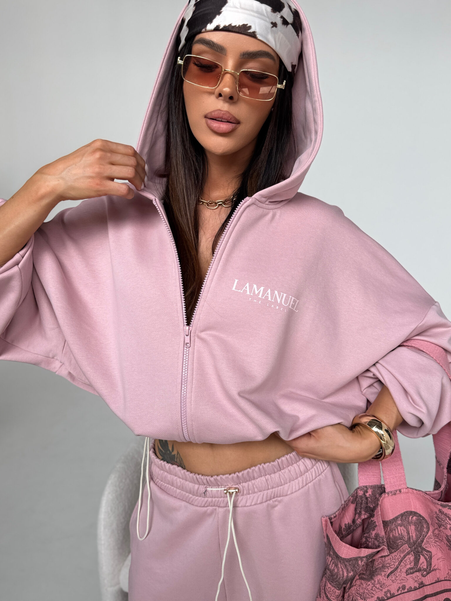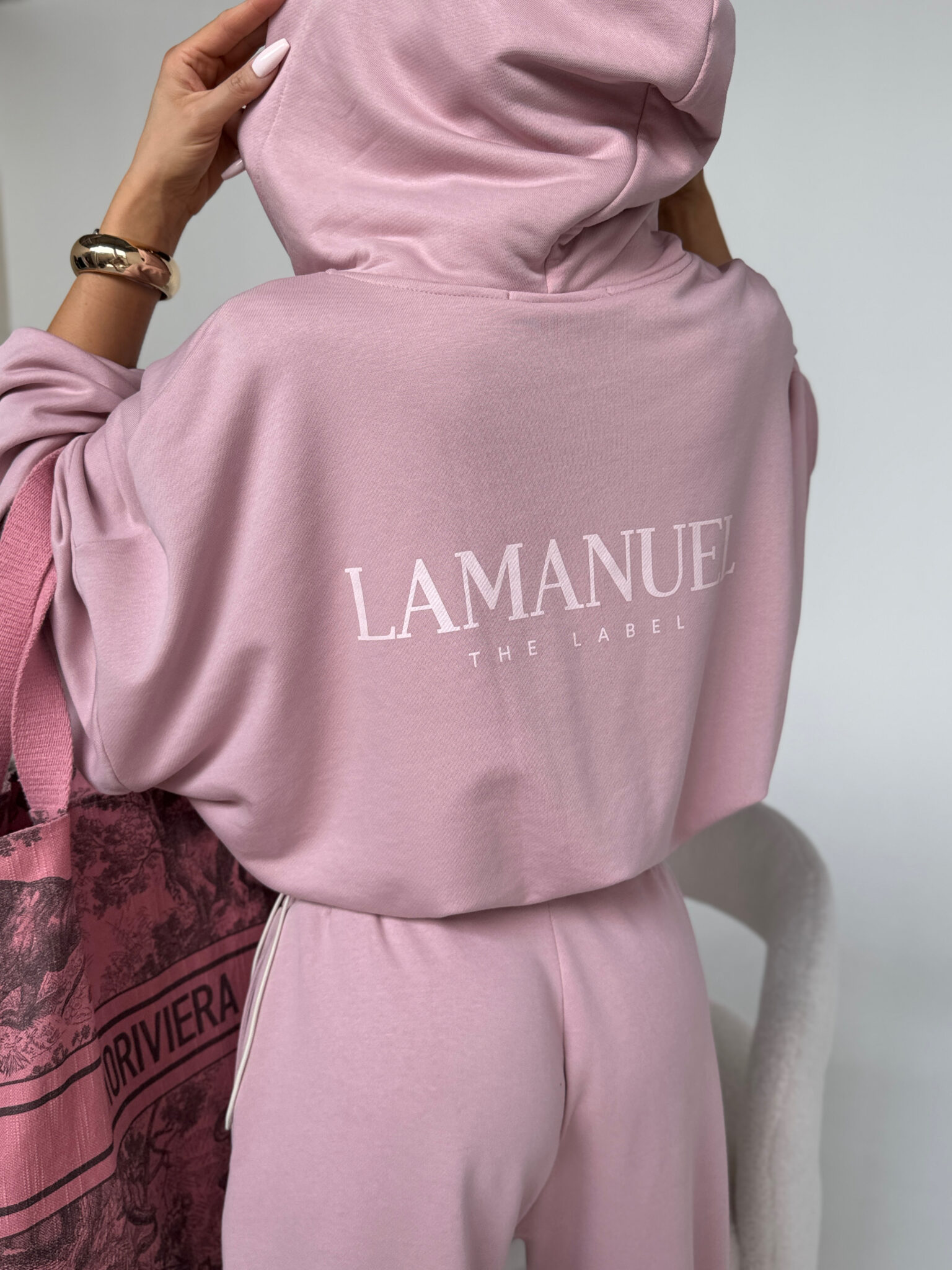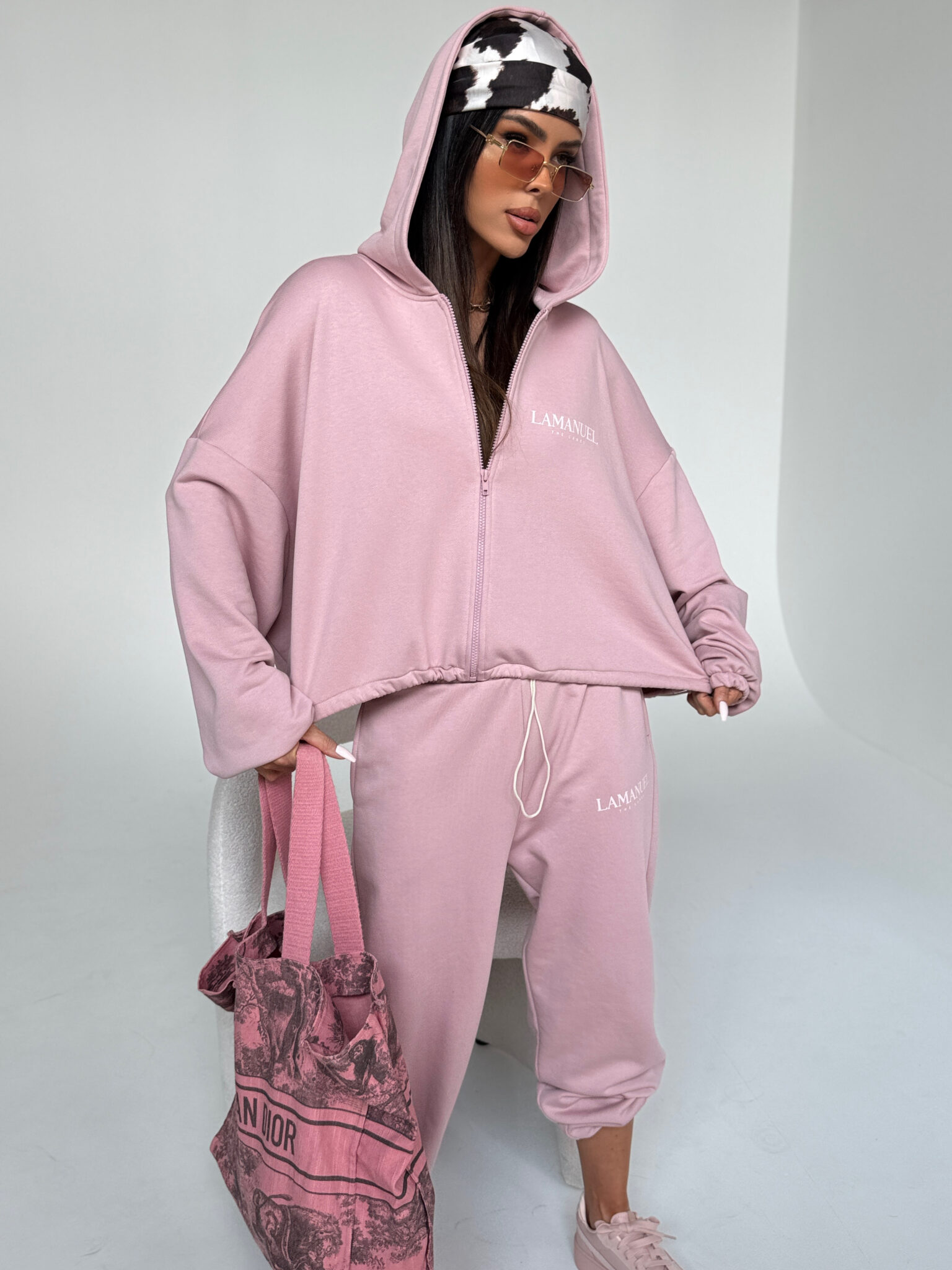 Bluza o luźnym kroju zapinana na suwak z kapturem i wszytym ściągaczem na dole, który umożliwia regulację szerokości i podkreślenie talii. Rękawy szerokie, zakończone delikatną gumką. Na piersi oraz na plecach znajduje się wyraziste logo LAMANUEL, które nadaje całości charakteru. Model wykonany z miękkiej, przyjemnej w dotyku dzianiny, idealny na co dzień i w podróży. Połącz je ze spodniami CLOUDY, aby mieć stylizację w całości. Bluza pasuje od rozmiaru XS do XL.