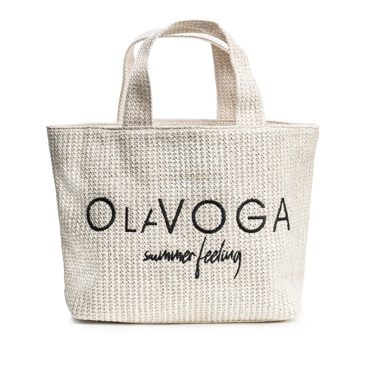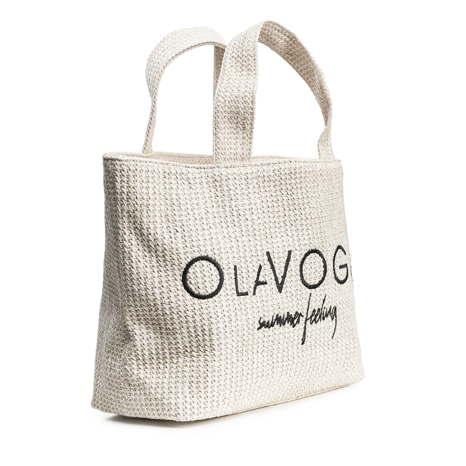 Wykonana z lekkiego, plecionego materiału o efektownej, strukturalnej fakturze. Jej naturalny, swobodny charakter uzupełnia haftowany napis „summer feeling” oraz logo marki OLAVOGA – kontrastowy detal, który przyciąga wzrok i podkreśla letni klimat.